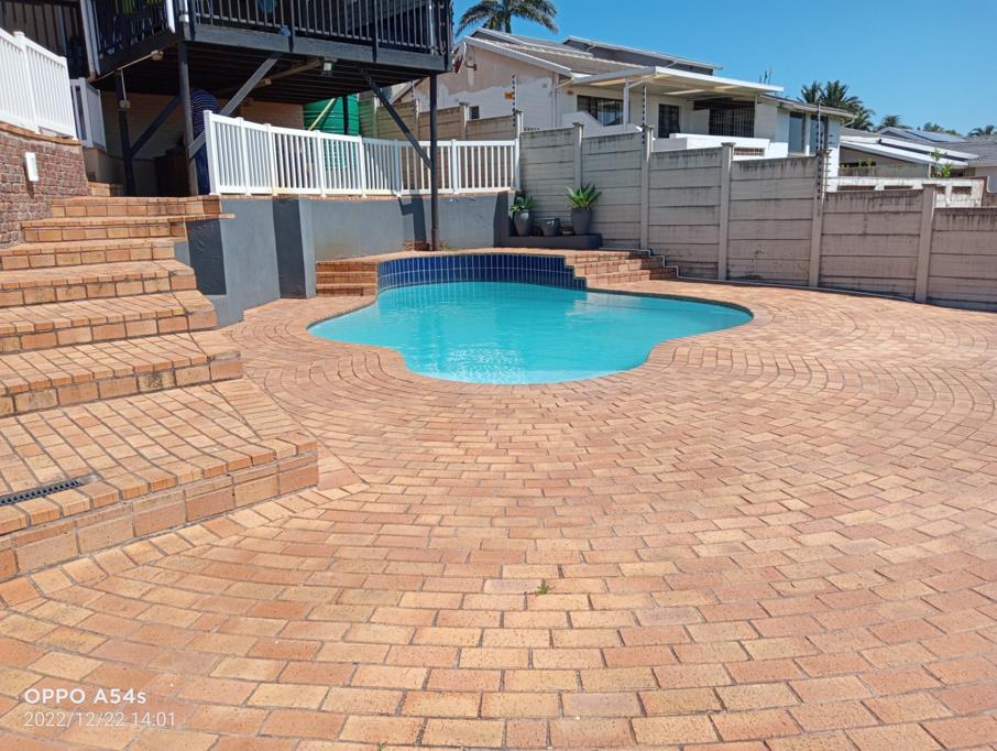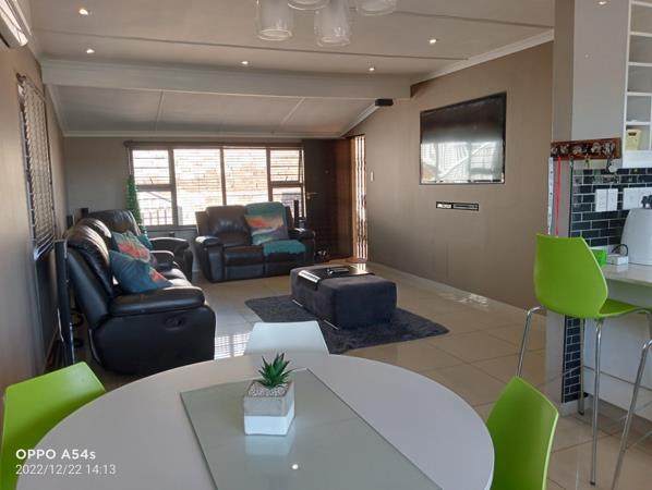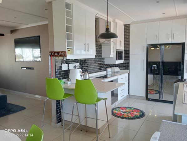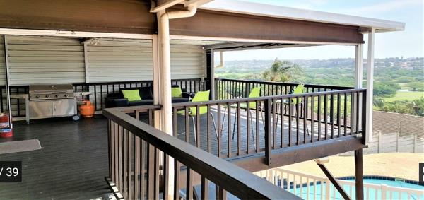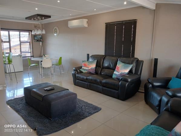Walking into your front door you have a big lounge that flows into your dining area and open plan kitchen. To your left you will find the passage leading you to 3 spacious bedrooms with BIC, (2 en-suits) and a third bathroom. Moving outside onto your deck you have your entertainment area where you will spend relaxing times with your friends or family. From your deck you look over onto your beautiful blue swimming pool, the neat back yard and have the most gorgeous view of The Bluff Golf Course. The house has Pre paid electricity, electric fence, alarm system