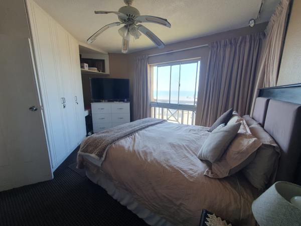 Beautiful four-bedroom unit featuring exceptional sea views, located directly across from the beach. The property includes one full bathroom and two en-suite bathrooms, an open-plan lounge and dining area, a well-appointed fitted kitchen, and air conditioning throughout. The unit offers privacy and security, with access to a swimming pool within the complex and 24-hour security services. The building is well-maintained. For more information or to arrange a viewing, please contact us today.