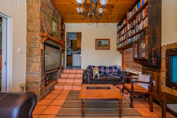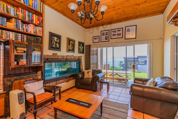 The ground floor centres around a lounge and a second lounge with a built-in braai, the owners favourite space, which opens onto a covered patio, manicured garden, and sparkling blue pool. From the covered patio, you can enjoy sea views that beautifully frame the gardens and pool area. The dining area also leads to this covered patio at the back, while the kitchen, fitted with a gas hob, oven, extractor, extensive storage, and a scullery, provides a functional hub for daily life. The three bedrooms on the ground floor share a full family bathroom.