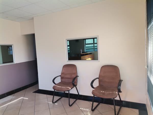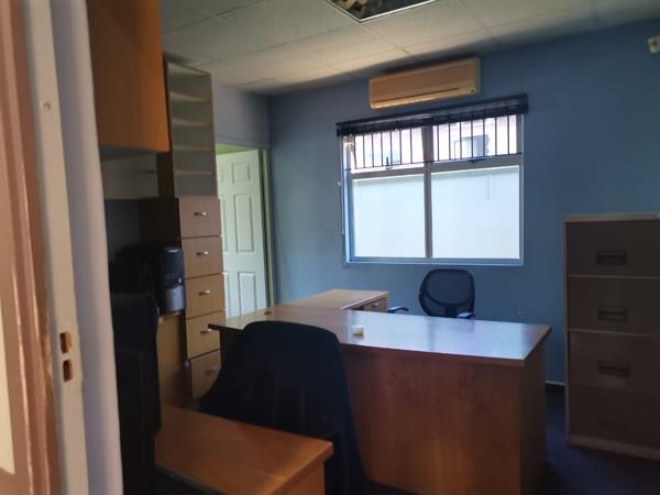 4 Office rooms with air conditioners, reception room, open plan lounge area, small kitchenette with cupboards, staff toilet.
