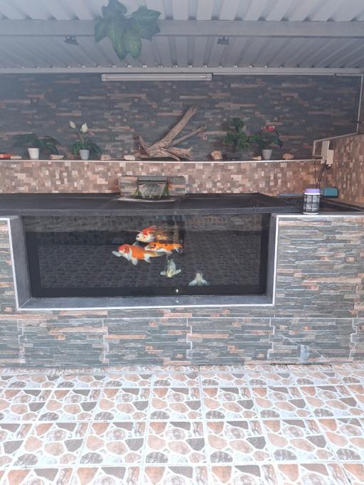 - Covered area in front with coy pond perfect for entertaining family and friends..