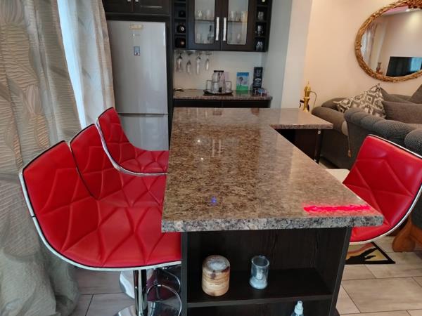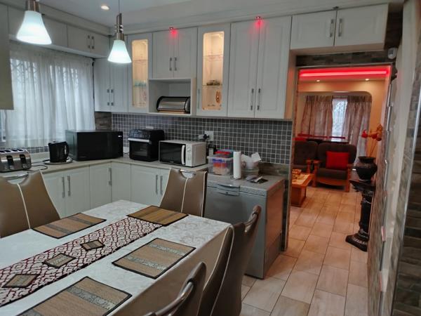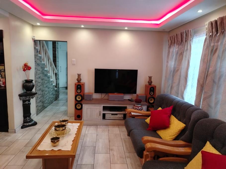 New and modern, this elegant family home consists of three bedrooms all fitted with cupboards, fully tiled, and ceilings that are fitted with downlights. The main bedroom leads onto a balcony with views of the surrounding suburbs.