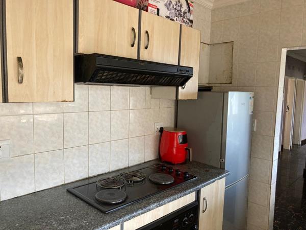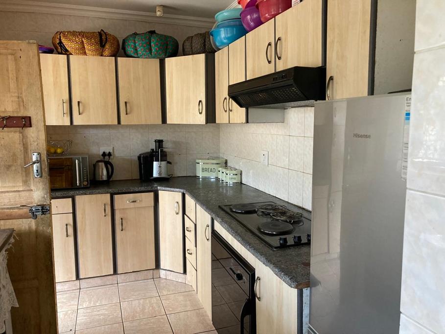 The heart of the home is its open-plan dining room and spacious lounge, which seamlessly flows onto a lovely verandah perfect for relaxing evenings. The well-appointed kitchen comes with ample cupboards, a hob, under-counter oven, extractor fan, and durable Formica tops.