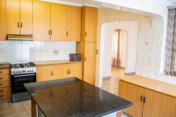 This home is fully tiled with three bedrooms, all fitted with built-in cupboards, the master bedroom has an en-suite and a family bathroom. This massive piece of property is fully fenced, with a paved driveway and a large carport that can accommodate more than two cars.