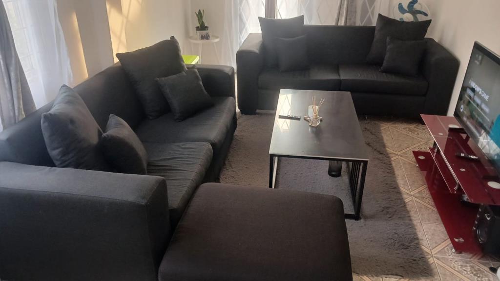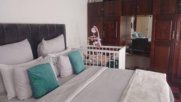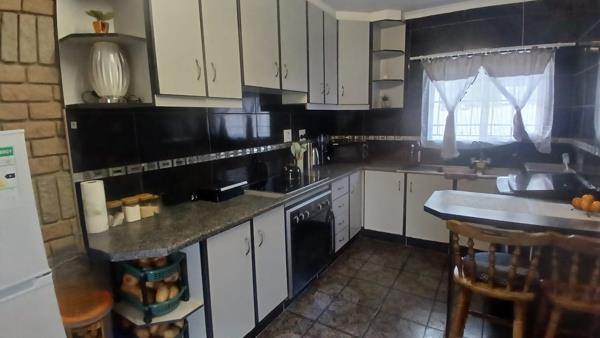 Step out onto the balcony and enjoy elevated views and fresh air. parking is a breeze with a single garage and open parking for up to 6 vehicles. the property also features drive-in access via an electric gate, with added security from burglar guards, security gate, alarm system and outdoor beams for peace of mind. the garden adds a touch of greenery, creating a lovely space for children or pets to enjoy.