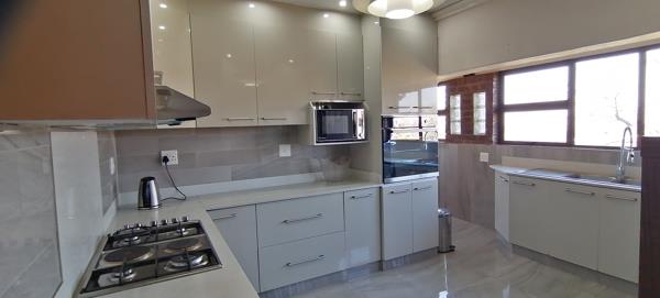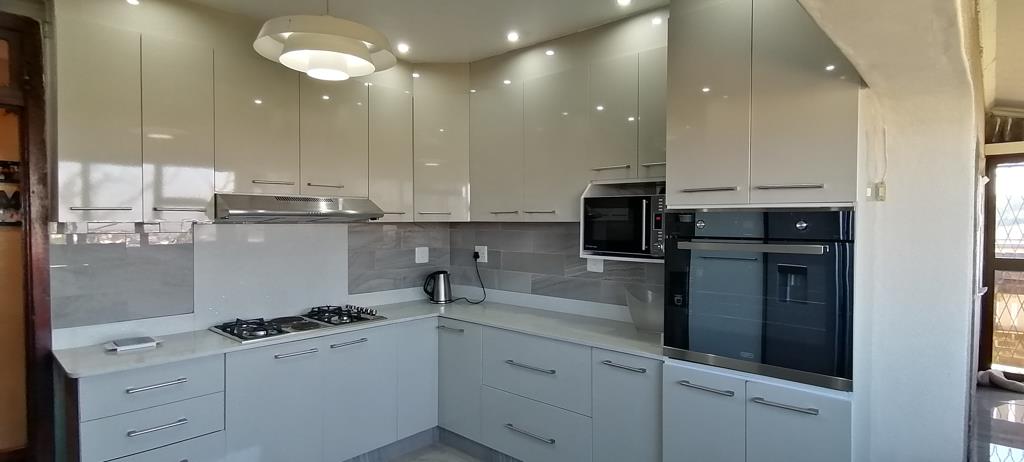 The upper level is move in ready home, boasting a spacious chef-inspired kitchen, equipped with a 2-plate electric and 4 plate gas hob, eye-level oven, ample counter and cupboard space, 4 well-proportioned bedrooms with built in cupboards, elegant open plan lounge and dining area, family bathroom and toilet.