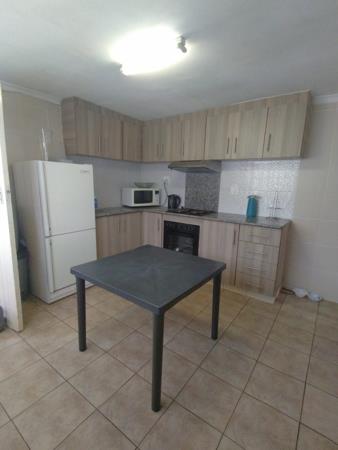 - Modern kitchen with cupboards.
