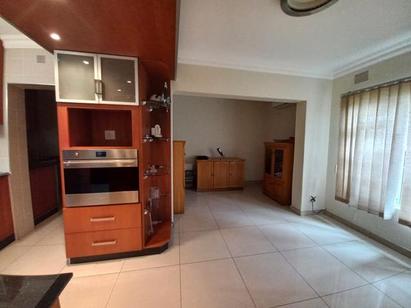 Modern family home situated very central. Ideal for fast paced lifestyle. Four bedrooms with two dining areas. Great entertainment area. Tiled with modern but elegant touch. Big glass windows, very modern bathrooms and spacious bedrooms. Balcony off bedrooms and lounge has an undercover entertaining area. Paved driveway access with double automated garage. Access to main house through garages. Off the grid comfort. Plenty of parking. Staff accommodation. separate scullery. Ideal for a young family.