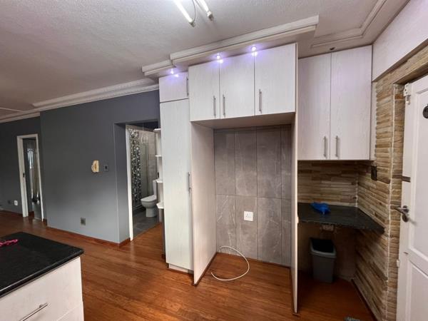 Step into a light-filled open-plan living and dining area, flowing seamlessly into a neat kitchen with ample cupboard space. Both bedrooms are generously sized with built-in cupboards, and the bathroom is clean and functional.