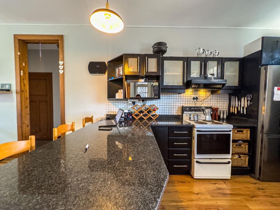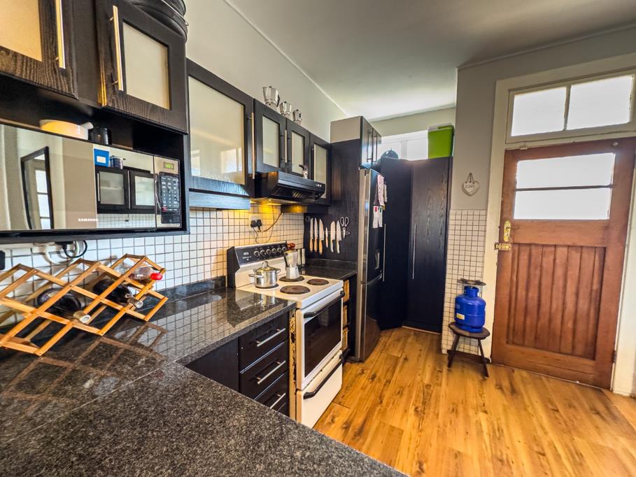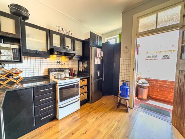 This inviting 102 sqm residential property in Bulwer, Durban, offers a seamless open-plan design, perfect for modern living. The heart of the home features a contemporary kitchen boasting dark cabinetry, elegant granite countertops, and stylish wood-look flooring. Integrated appliances, including an extractor fan, complement the functional layout, which includes a breakfast bar for casual dining. This space flows effortlessly into a spacious lounge and a dedicated dining area, both bathed in natural light from large windows, creating an airy and welcoming atmosphere.
