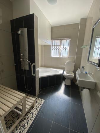 Modern Bathroom: Enjoy a spa-like experience in the stylish bathroom with a large walk-in shower and a luxurious corner bath.