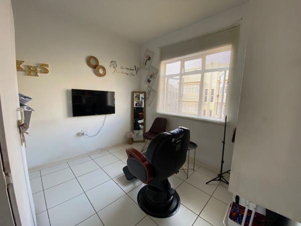 Walk into the apartment you will find a kitchen with build in cupboard''s , stand alone oven and stove , single basin sink and space for a fridge and washing machine walk down the passage and there is an area for a small table and chairs and a separate lounge.