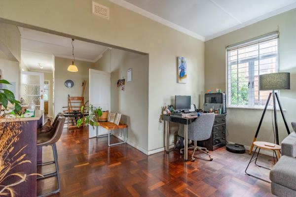 Step inside to discover beautiful parquet flooring throughout and a spacious open-plan living and dining area filled with natural light. Take in breathtaking views of the Berea and harbour from the fitted window coucha perfect spot to relax that also cleverly converts into a sleeper bed. Adjacent to this is a cozy study nook, ideal for work or reading, all secured with neat burglar bars for peace of mind.