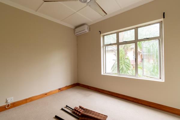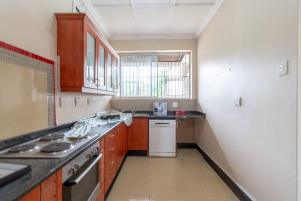 The back door leads off downstairs to the garage and garden. The garden has a area to braai band children to play within the safety of the complex.