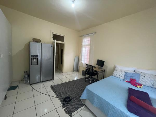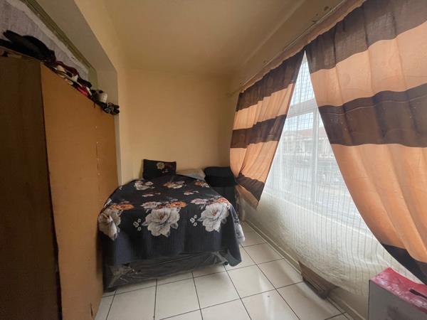 Fully tiled floors, fitted kitchen, and wall-to-wall built-in cupboards in the bedroom.