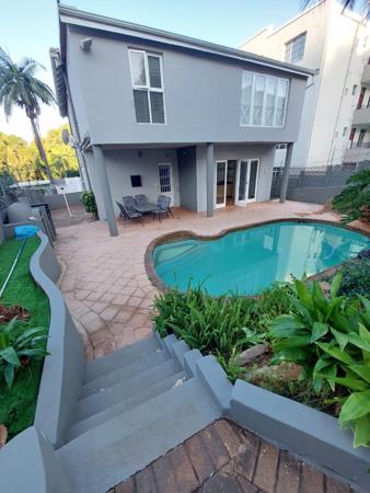 This home consists of three very spacious bedrooms upstairs with modern built in cupboards. Both bedrooms comes with a walk-in closet. The main bedroom comes with an en suite with a double rain shower for him and her. Downlights in bedrooms and family bathroom. Main bedroom bathtub comes with a high pressure jets for a relaxing lie in the bathtub after a stressful day. The family bathroom comes with a full bathtub and a full standing shower with two wash basins and a toilet. There is a spacious study overlooking the Bulwer park. Downstairs is the spacious dining room that fits an eight seater dinner table and the windows which are five full size glass doors overlooking the park. Lounge is very spacious and overlooks a sparkling swimming pool. The kitchen comes with a space for a double door fridge, plumbed for a dishwasher and a washing machine and a four plate gas stove with electric oven. The entire kitchen comes with modern built in cupboards and granite tops.