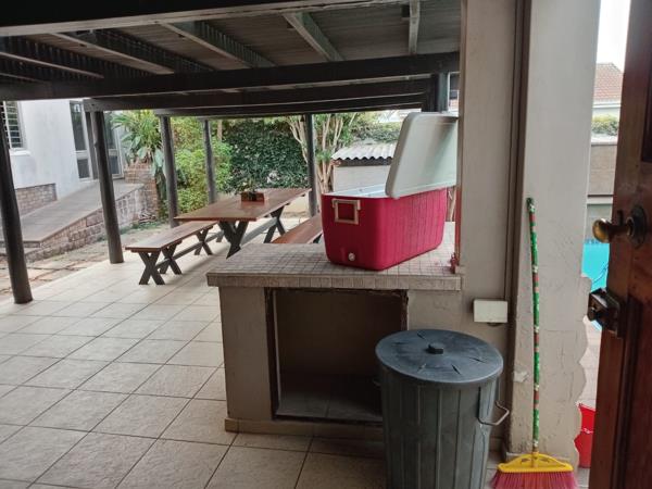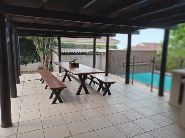 Stunning Covered Entertainment Area with Built-In Braai which is a modern outdoor space ideal for hosting family gatherings, celebrations, or relaxed evenings with friends.