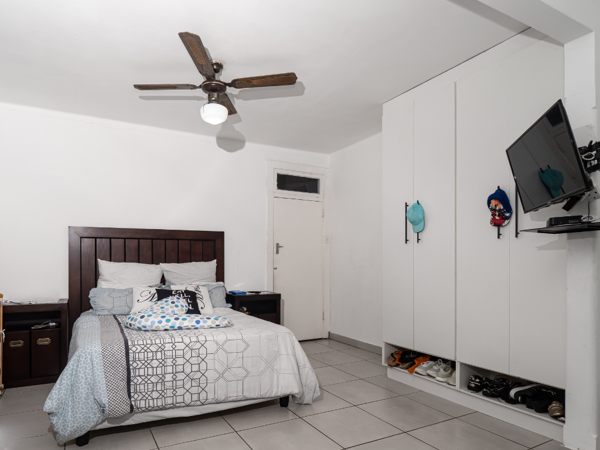 The main bedroom is impressively spacious, easily accommodating larger furniture while still feeling airy and comfortable. Additional ceiling fans in selected rooms help keep the apartment cool on warm Durban days, adding to the overall comfort throughout the home.