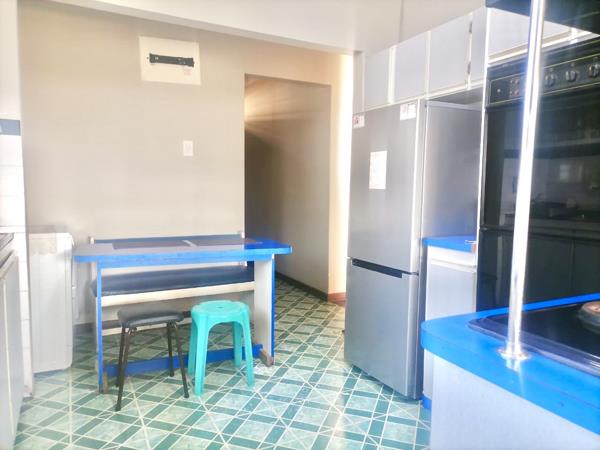 The bedrooms are spacious with built-in cupboards in two of them and an en-suite in the main bedroom. The large dining room can accommodate a formal dining table with the warmth of spending quality family time whilst enjoying your favorite meals together or just socializing. The kitchen which is adjacent to the dining room is fitted with built-in cupboards, hob, oven and extractor with post form counter tops.
