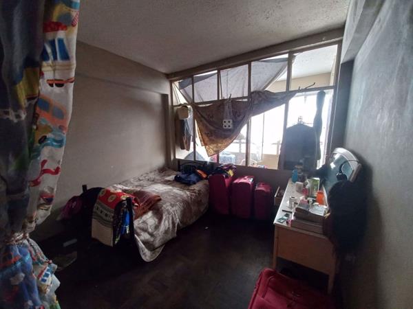 Large one bedroom apartment in Durban Central. This charming apartment has a single bedroom unit with wooden floors, an enclosed balcony which is currently being used as a second bedroom. The bathroom has tiled flooring, a bath, basin and toilet.