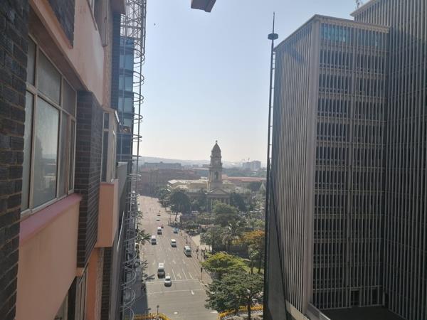 Easy access to the city Centre and beaches. Stunning views are a major attraction to this flat. With the Grand Old City Hall to the left and the awesome beaches Durban is known for on your right.... All this is seen from your balcony. The spacious bedroom is fitted... So is the kitchen. The flat is serviced by a lift and a security log at the door... Call now for a viewing.