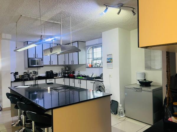 A modern kitchen fitted with granite countertops, built-in cupboards, LED lighting, and a fitted stove with chimney offers both functionality and style. All bedrooms come with built-in cupboards, with the main bedroom featuring an elegant en-suite bathroom and built-in headboard for added comfort.
