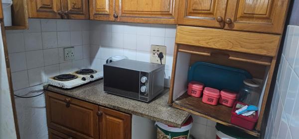 It offers one large main bedroom with built in cupboards, spacious lounge area currently being used as a second bedroom,