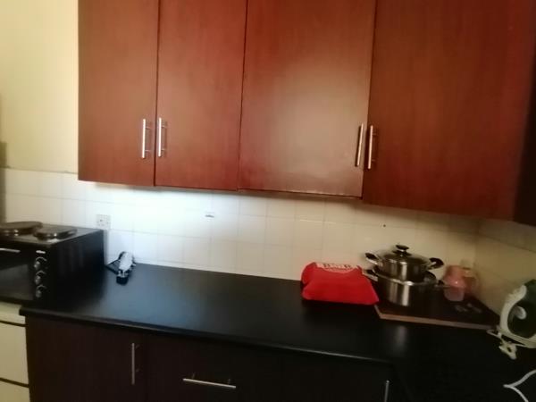 The apartment is fully tiled. The bedrooms and kitchen have built in cupboards.