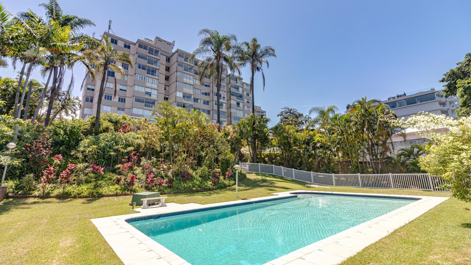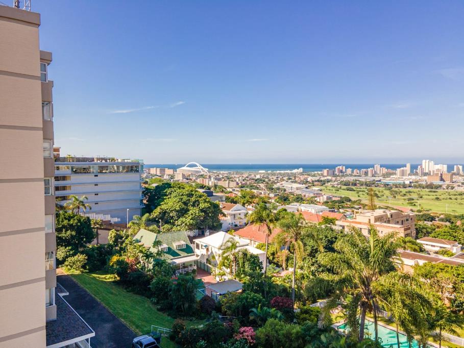 Welcome to this spacious step less 3 bedroom apartment 151m2 corner apartment. North facing with stunning sea and city views 270 degree views the lift will take you directly to your door with private foyer. Fully renovated apartment with parquet flooring, open plan lounge dining room with large slider door widows looking out over Greyville race course. Fully renovated kitchen with white Caesar stone counter tops and ample cupboard space. Three large bedrooms Main en suite and a family bathroom with separate guest loo both bathrooms are fully renovated. Aluminium windows throughout. Apartment comes with one lock up garage plus a second open bay parking and a small store room domestic quarters.