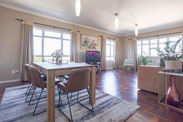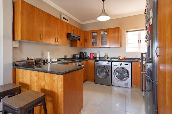 The generous dining area and lounge capture breathtaking sea views, creating the perfect space for both relaxation and entertaining. The kitchen is a decent size, tastefully renovated to combine practicality with modern finishes. A secure lock-up garage is included, and the property benefits from 247 road security, with a guard hut situated right outside for added peace of mind.