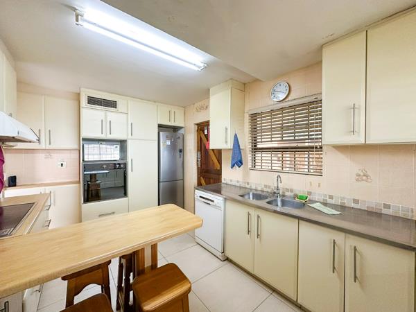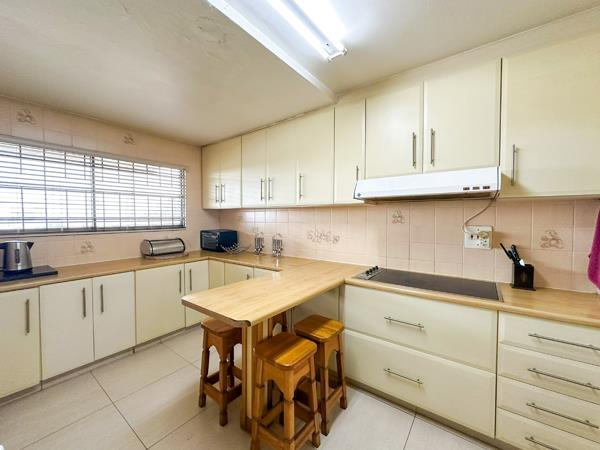 The fully tiled ground level features a large kitchen, a light and airy open plan dining area, a lounge, and a separate television lounge. The upper level contains three bedrooms and two bathrooms, including the master en-suite. All bedrooms are air-conditioned and equipped with modern built-in cupboards. The views are just breathtaking and extend 180 degrees to Durban''s port. This property also provides top-tier security. The facility is equipped with electric fences, an alarm system, and cameras.
