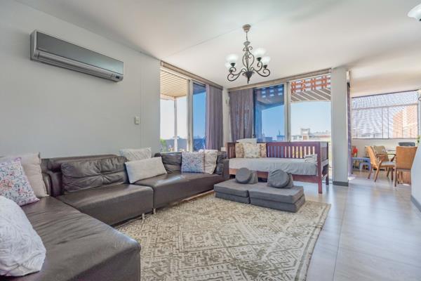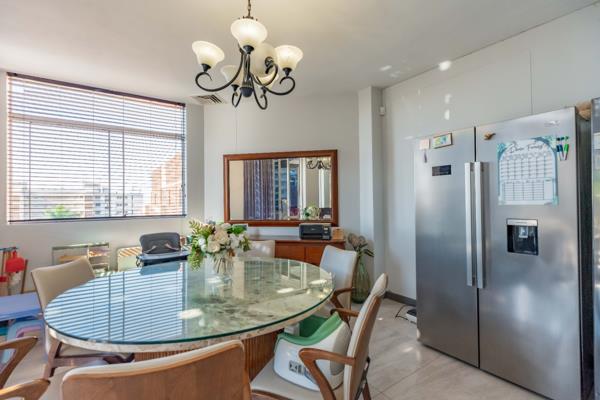 Located in a well-maintained building with a strict body corporate, this exquisite double story penthouse occupies the top floor of the building with complete privacy and offers a blend of modern elegance and comfortable living. Upon entry, you are welcomed by a beautiful entrance way followed by a spacious, tiled lounge with a featured TV wall and an abundance of natural light that fills the space throughout the day, giving you the beautiful sunrise over the ocean and sunset over the city. The lounge opens onto a generously sized, tiled balconyideal for outdoor dining , a patio garden or enjoying breakfast while taking in the breathtaking views of the nearby stadium and a glimpse of the sea. The fully fitted kitchen boasts sleek granite countertops, ample built-in cupboards offering plenty of storage, a gas hob, oven, extractor fan, and a plumbed dishwasher. The kitchen is perfectly positioned next to the dining area, making meal service convenient and seamless.