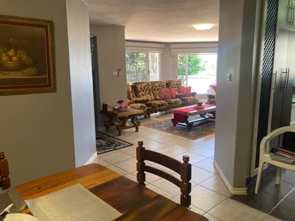 The living area opens up to the garden area with sliding doors and windows with a beautiful dining area separate from the living area.