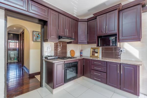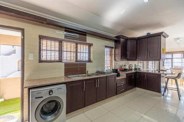 The residence comprises three well-appointed bedrooms, each boasting ample built-in cupboard space to effortlessly accommodate your storage needs. The master suite presents a private oasis, complete with an ensuite bathroom for added comfort and convenience. Additionally, a tiled family bathroom awaits, featuring a luxurious bathtub, basin, and toilet, providing a sanctuary for relaxation and rejuvenation. Outside, residents can enjoy access to a communal area exclusively shared between the two units, offering a safe and secure environment for children to play and for neighbors to foster community bonds. Convenient communal wash lines further enhance the practicality of everyday living. Ensuring peace of mind, remote-controlled access gates safeguard entry to the well-maintained complex, while its location in a renowned area ensures proximity to a wealth of amenities, including shops, schools, and recreational facilities.