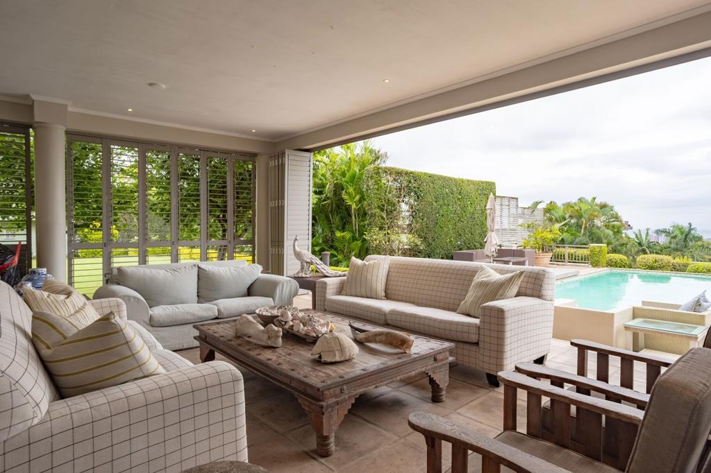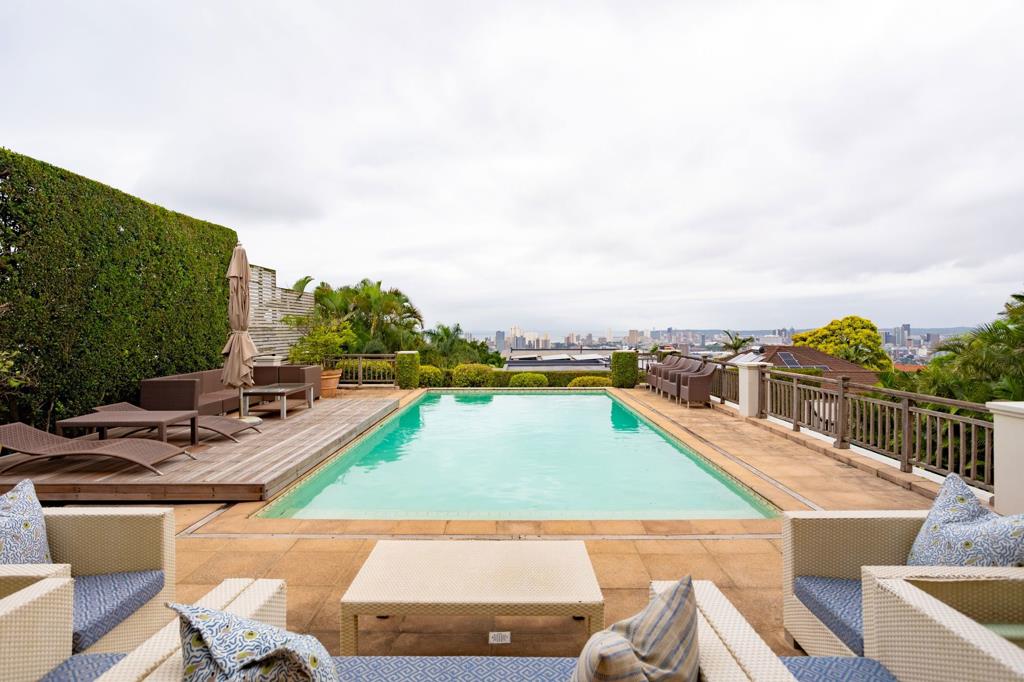 The main bedroom is carpeted with a full modern en-suite bathroom and dressing room. It leads onto the upstairs verandah to take advantage of the panoramic views of the sea and Durban skyline.