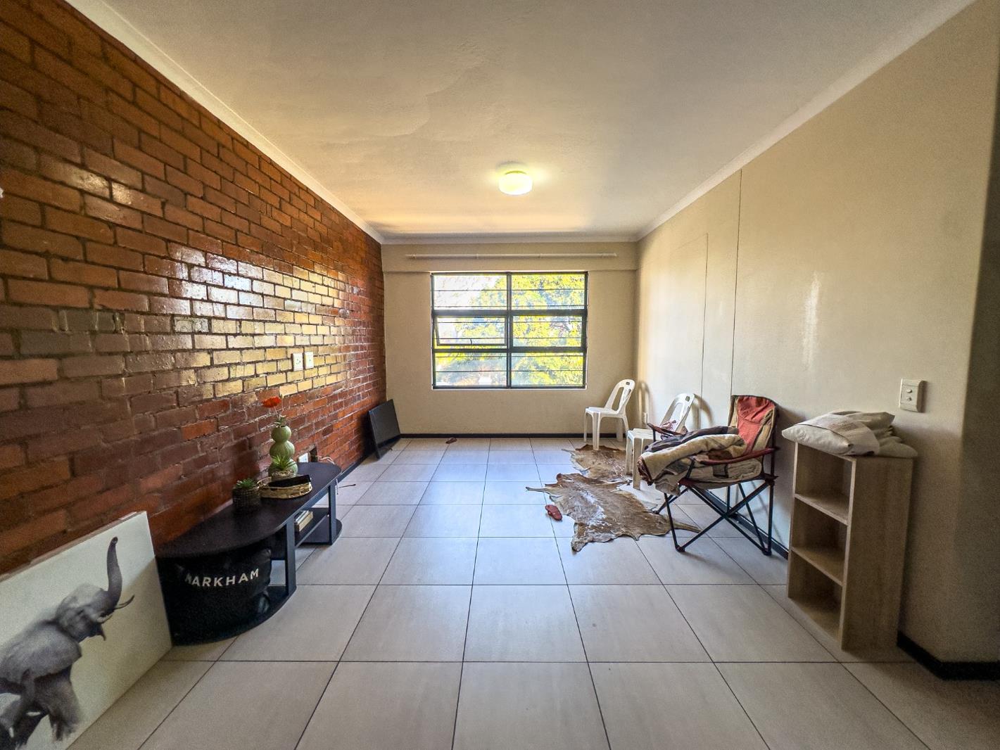 Discover this charming 2-bedroom, 1-bathroom apartment nestled in the vibrant suburban heart of Essenwood, Durban. Spanning a comfortable 52 square metres, this residence offers a practical open-plan layout that seamlessly connects the living area with the kitchen, creating an inviting and versatile space. The interior is characterised by durable, light-coloured tiled flooring throughout, ensuring easy maintenance and a bright ambiance. A distinctive exposed red brick accent wall adds character and a touch of urban chic to the main living space, complemented by neutral painted walls that provide a versatile canvas for personal style. Large windows flood the area with ample natural light, enhancing the sense of spaciousness.