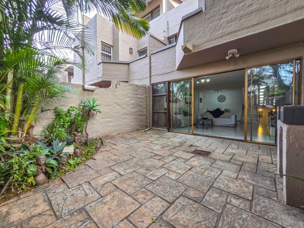 The large open-plan lounge and dining area is finished with stylish laminate flooring and leads out through sliding doors to a private courtyard with a built-in braai area perfect for entertaining guests.