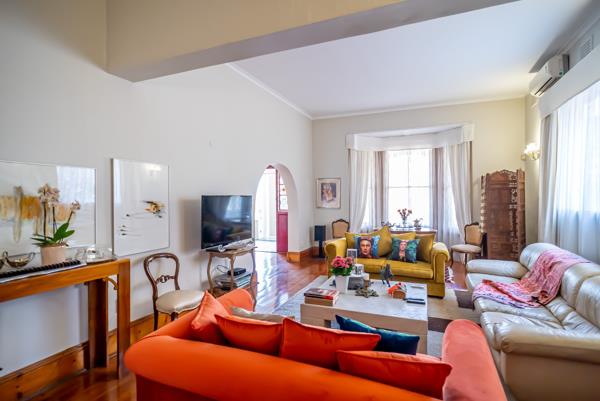 Inside, the home features warm wooden floors and an inviting entrance hall that leads to generous living spaces. The open-plan lounge and dining area lead to the kitchen, complete with a separate scullery and laundry area. The kitchen opens to a private patio. A versatile sunroom/studio has stackable doors opening onto the patio which is perfect for entertaining.