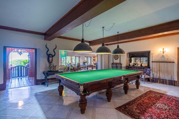 The home offers two inviting TV lounges, a formal dining room, and a sprawling entertainment lounge complete with a billiard table, ideal for hosting guests in style. The generously appointed oak kitchen is accompanied by a separate scullery and pantry, designed for both functionality and comfort.