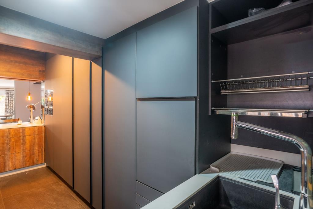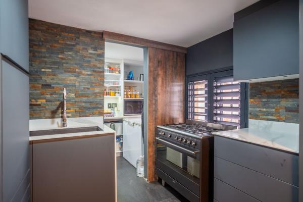 This tastefully renovated kitchen adheres to modern trends and features excellent lighting. The open-plan layout is equipped with premium Italian tinted stone Laminam countertops, beautifully crafted wooden built-in cupboards, a delightful breakfast nook area, built-in oven and microwave, striking rock-finished feature walls, hob, and aluminum shutters. This seamlessly transitions into a spacious lounge area combined with a dining space, leading to a charming outdoor entertainment area with a sparkling pool, perfect for hosting guests. Upstairs, you''ll find three well-proportioned bedrooms adorned with ample built-in cupboards and ducted air conditioning for year-round comfort. The main bedroom boasts a full en-suite bathroom with serene garden views, while a modern bathroom with a shower caters to the additional bedrooms.
