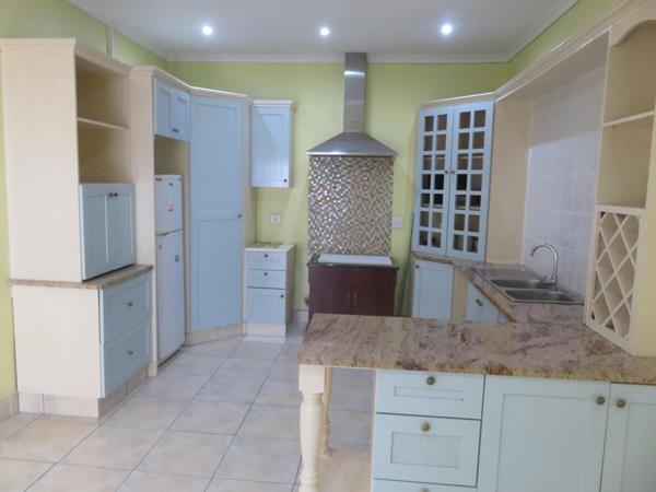 Kitchen with built in cupboards & granite tops. Open plan lounge & dining area leading onto a wooden deck, ideal for entertainment area. Laminate flooring throughout the home. 3 X Lock up garage, parking for 10 vehicles.