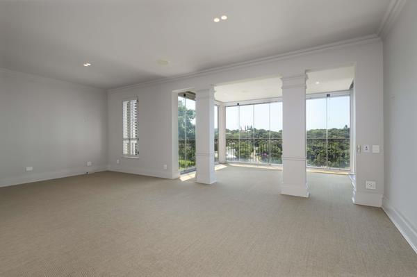The second level presents endless possibilities. A guest bedroom with an en-suite bathroom and Patio access provides comfort and privacy, while the adjacent entertainment lounge (or potential master suite) is a true highlight. Featuring automated blinds and opening onto a wraparound patio, this space is an entertainers dream or a tranquil retreat, offering unrivaled panoramic views over lush Essenwood, the iconic Moses Mabhida Stadium, and the shimmering ocean beyond.