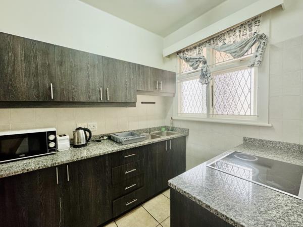 Bedroom & Bathroom: One well-sized bedroom with built-in cupboards and an en-suite bathroom featuring a bath with shower, and washing machine connection.