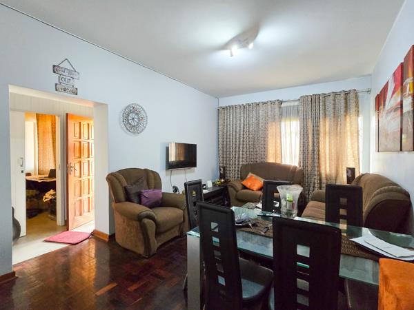 Step into a generously sized lounge featuring beautiful parquet flooring and built-in cupboard space. The spacious kitchen is equipped with ample built-in cupboards, ideal for all your storage needs.