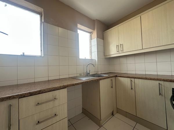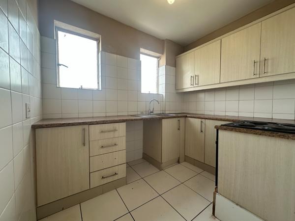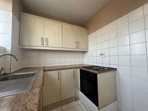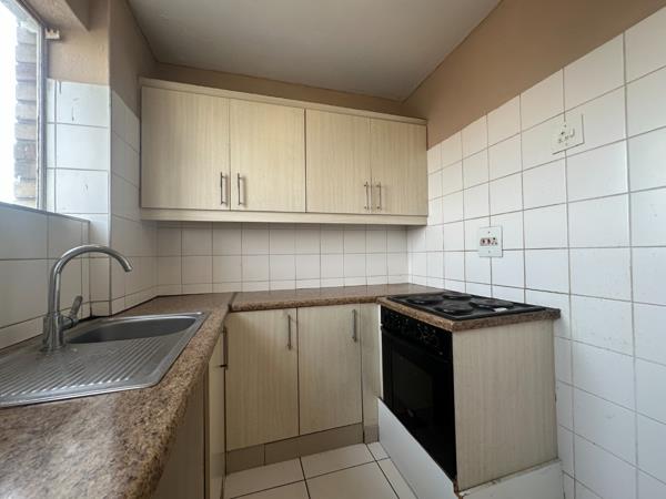 Step inside to a spacious, light-filled open-plan lounge and dining area, tiled throughout and fitted with a ceiling fan to keep the space cool and comfortable. The kitchen features a built-in oven and hob, along with generous cupboard space. The main bedroom includes built-in cupboards, while the enclosed balconyaccessed from the living areacan easily serve as a study or additional half bedroom. The bathroom is neatly appointed with a bath, basin, and toilet.