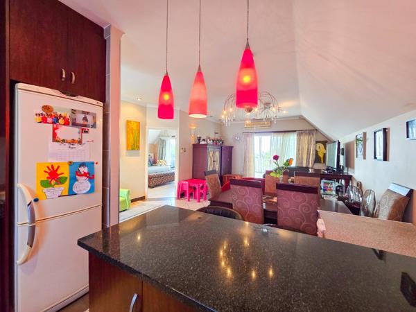 The apartment features a generously sized, open-plan fitted kitchen equipped with a stove, oven, and ample cupboard space. The kitchen seamlessly flows into the dining area and cosy lounge, which in turn opens onto a large balcony offering breathtaking sea and city views ideal for hosting family gatherings and social events.