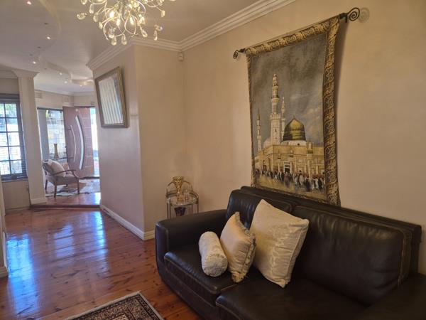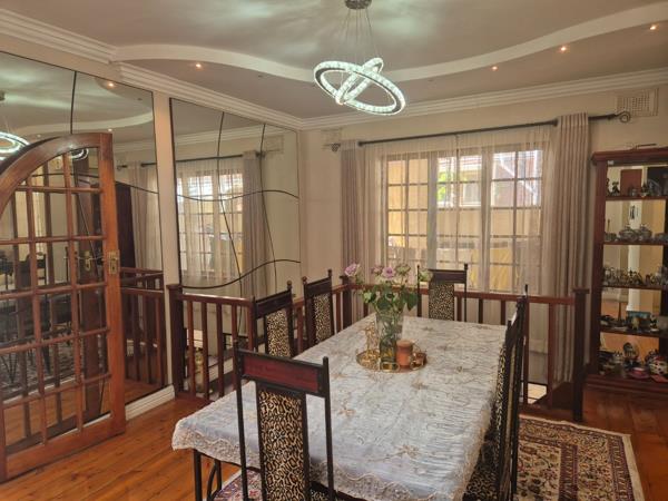 Step into this beautifully appointed 5-bedroom, 3-bathroom home in the heart of Durbans sought-after Essenwood suburb. Designed with modern living in mind, the residence features a seamless open-plan layout that effortlessly connects the main living and dining areas. Polished hardwood floors, elegant ceiling details including crown moulding, recessed lighting, and decorative chandeliers create a warm and sophisticated ambiance. Natural light pours in through expansive windows and a central skylight, enhancing the home''s inviting atmosphere.