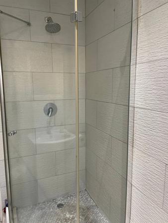 Shower and toilet, ideal for use as an office, studio, or business storage.