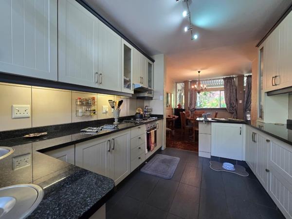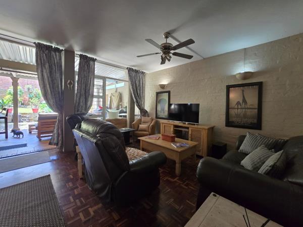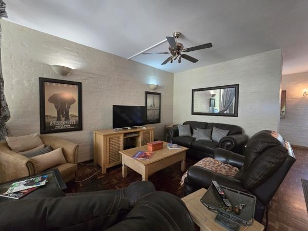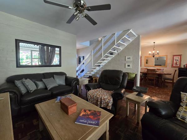 Discover comfortable suburban living in this 140 sqm residence located within a secure complex in Essenwood, Durban. This furnished 3-bedroom, 2.5-bathroom home offers a practical and inviting layout, ideal for those seeking convenience and security. The open-plan design seamlessly connects the living and dining areas, featuring classic parquet flooring and painted brick walls that add character. Ceiling fans ensure comfort, while large windows and glass doors provide ample natural light and direct access to a private garden area, complete with an awning for outdoor enjoyment.