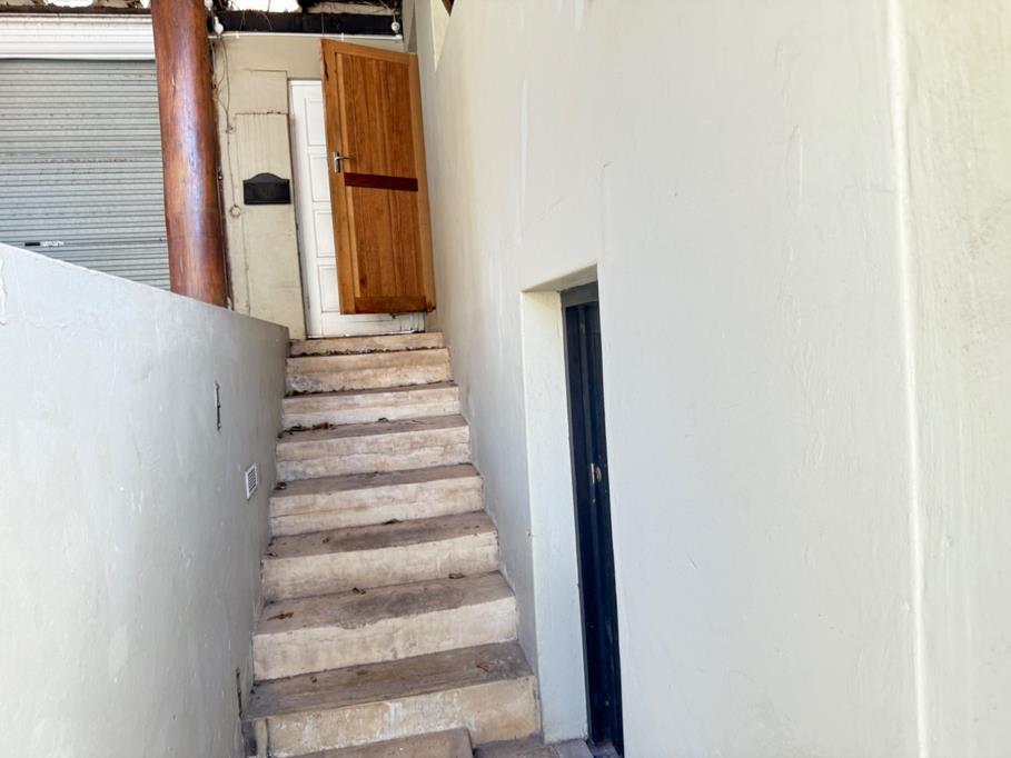 The open plan living and dining room is absolutely exquisite. it is spacious with clean lines. it is practically the centre of the property with all exits visible to it. Ii has aluminium doors with one leading to the pool area and another leading to the leisurebraai area. it is tiled. The stair Case is tiled to perfection with dark wood railings leading to the passage connect the two bedrooms.
